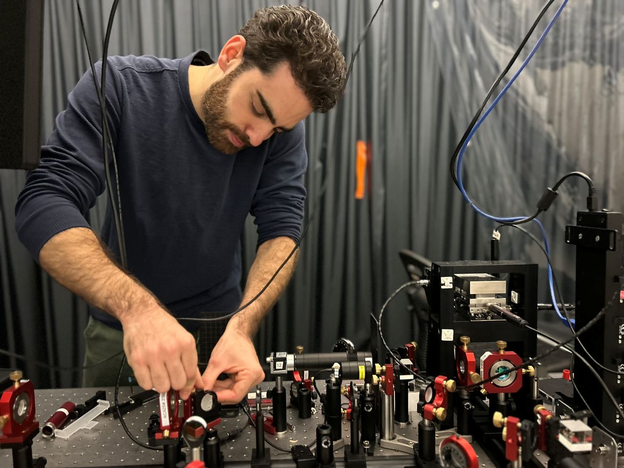 The research teams of Femius Koenderink and Lyuba Amitonova (ARCNL) investigated new optical detection strategies to efficiently measure perturbations at the nanometer scale. For their experiments they used metasurfaces, which are artificial surfaces configured with carefully shaped nanoparticles that interact with light. Inspiration for the project came from a collaboration of AMOLF, ARCNL and industry partner ASML, focused on finding new ways to monitor potential errors that might arise during computer chip fabrication. The researchers published their findings in the journal Nature Communications on December 10.